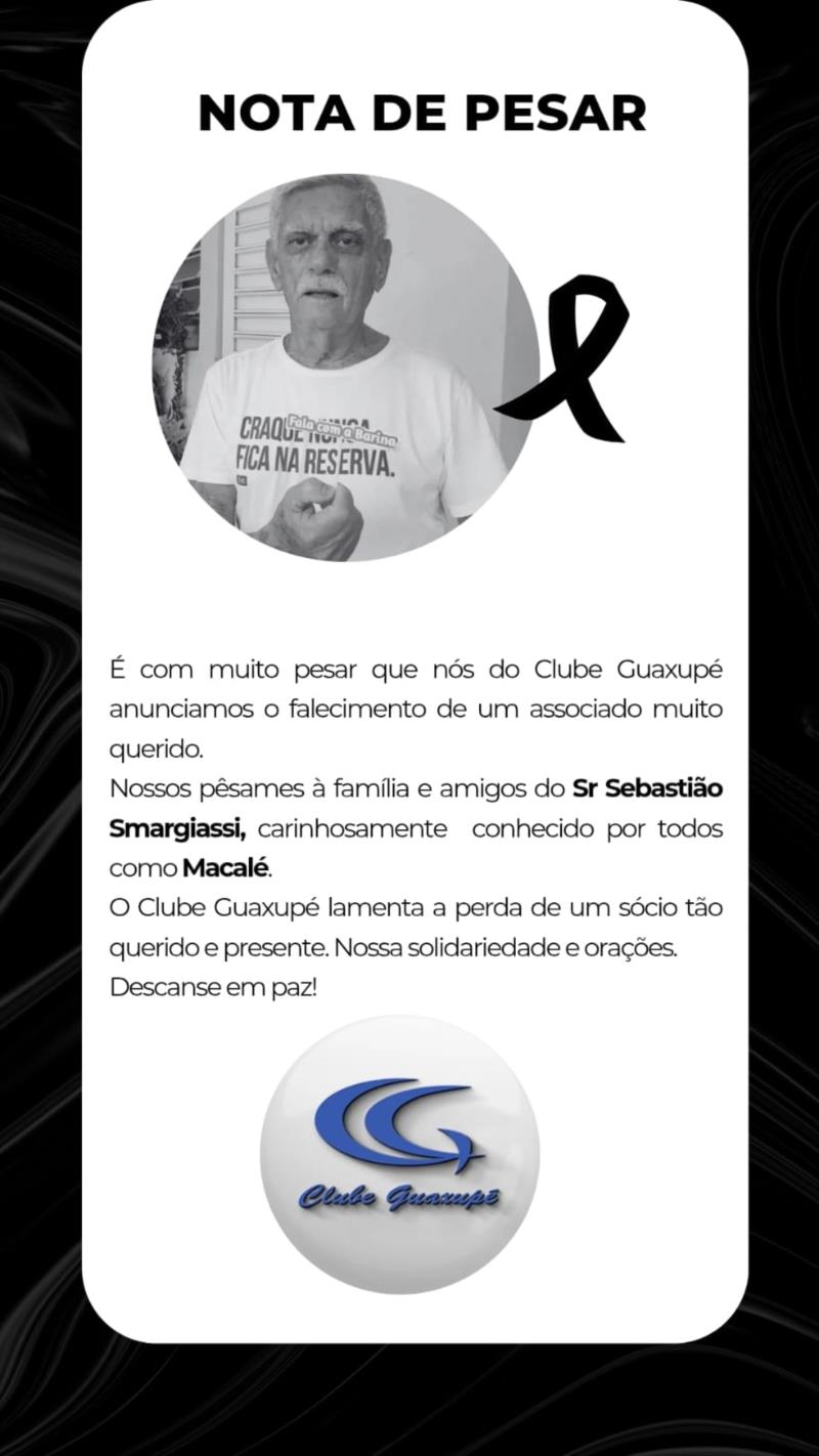 É com muito pesar que nós do Clube Guaxupé anunciamos o falecimento de um associado muito querido.