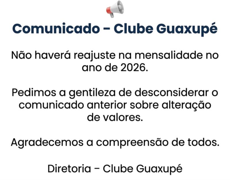 03/03/2026 Informamos que a partir de 01/04/2026 as mensalidades e taxas de manutenção sofrerão reajuste.